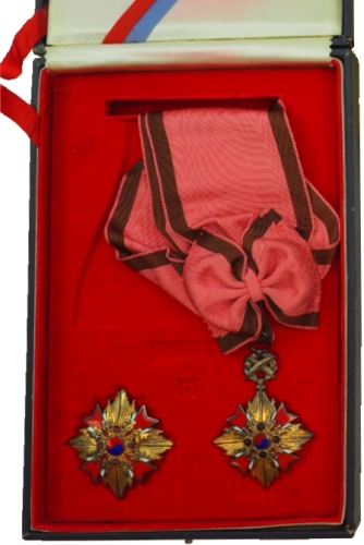 On Nov. 17, 1970, under Presidential Decree #5388, all the classes for the Order of Diplomatic Service merit were renamed. There are no physical size or weight changes from the earlier series. The only way to tell the difference is to look at the wording on the reverse of the pendants and/or the breast stars. The new names are: