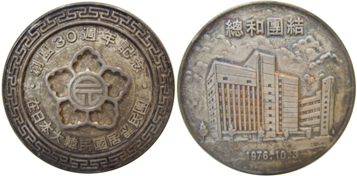 Mindan tends to exclude newcomers from its organization. On May 20, 2001, recent immigrants from Korea created a new, non-profit organization called the Korean Association in Japan 재일본한국인연합회 (在日本韓国人連合会), also known as the Federation of Korean Associations 재일본동경한국인연합회. Their website specifically states, “We call the Koreans who came to Japan and settled in Japan following the Korea-Japan Agreement in 1965 as newcomers.” Their website is at https://www.haninhe.com/. Although it is a national organization in Japan, only a few local branches have been established. To date, no medals from this organization have been observed.