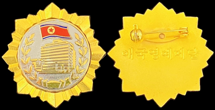 On the reverse is the inscription 애국영예메달 ‘Patriotic Honor Medal’ which refers to the glorious honor gained by practicing devotion and love for one’s country, and is a concept that can be interpreted in various ways depending on the historical, cultural, and political context.