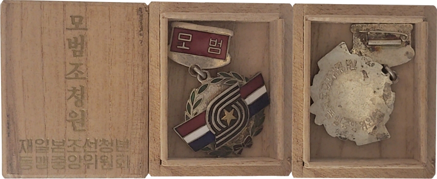 For the box on the left, the title on the box cover is 모범조청원, meaning ‘Model of the Chosŏn Youth Alliance.’ This is an expression used to praise young people who set an example by being loyal to the North Korean leader, leading the patriotic movement, and supporting schools. In other words, it means that you are a youth alliance member who follows the organization’s goals and is dedicated.