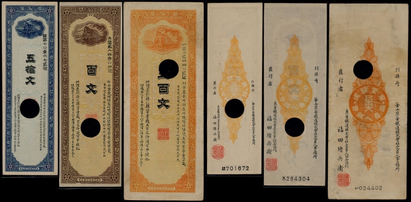 The Gyeongseong-Pusan Railway is primarily known today for issuing banknotes (scrip) in 50, 100, and 500 Mun denominations.