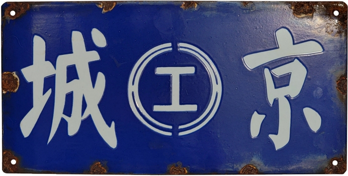 Reading from right to left is 京城 (Keijo), which was the Japanese name for the city of Seoul. (Pronounced Gyeongseong 경성 in Korean, it translates as “Capital City.”)